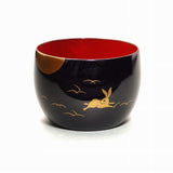 Superb hand made hand written Tsuki-Usagi (Moon and Hare) makie(decoration with golds) with also makie written Inaho(ear-of-rice) inside the cup, which makes the sake to look special. This inner cup makie is the only type we have from Wajimaya-zenni sake cups. This nice little tsuki(moon), usagi(hare) and inaho(ear-of- rice) expresses the tradition of the enjoyment of the sake during the Harvest moon. Please do not use a silverware directly.